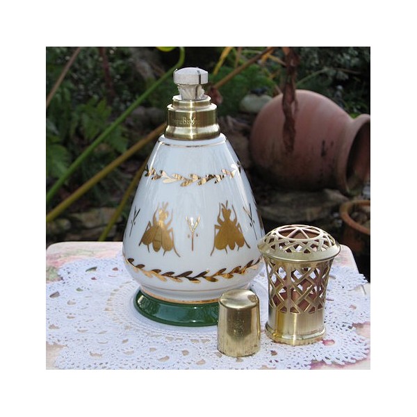 Belle LAMPE BERGER EN PORCELAINE DES MANUFACTURES DE COULEUVRE : Empire à décors d'abeilles impériales dorées à l'or fin, diffusée dans les années 60.